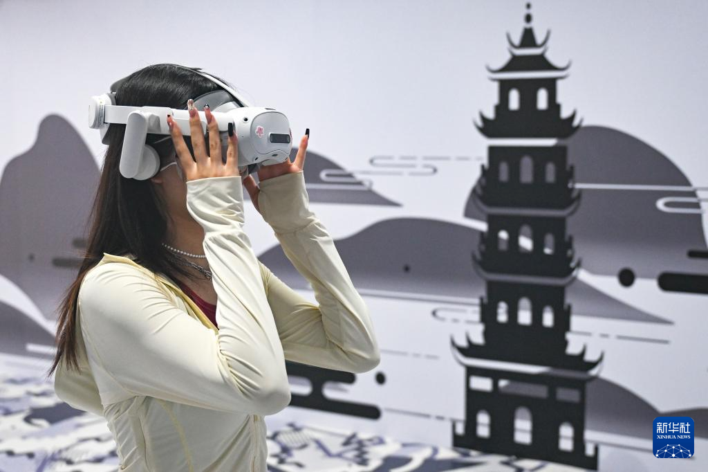 6月14日,觀眾在電影藝術(shù)展上參與VR體驗項目。
