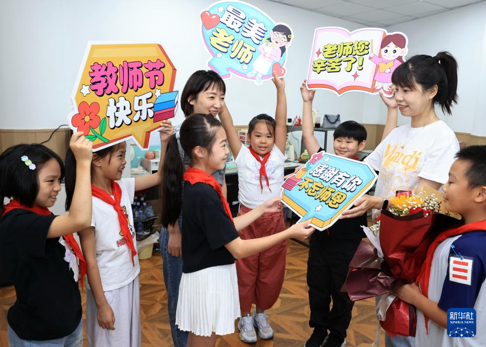9月9日,在武漢市未來實驗小學美林校區(qū),學生為教師送上節(jié)日祝福。